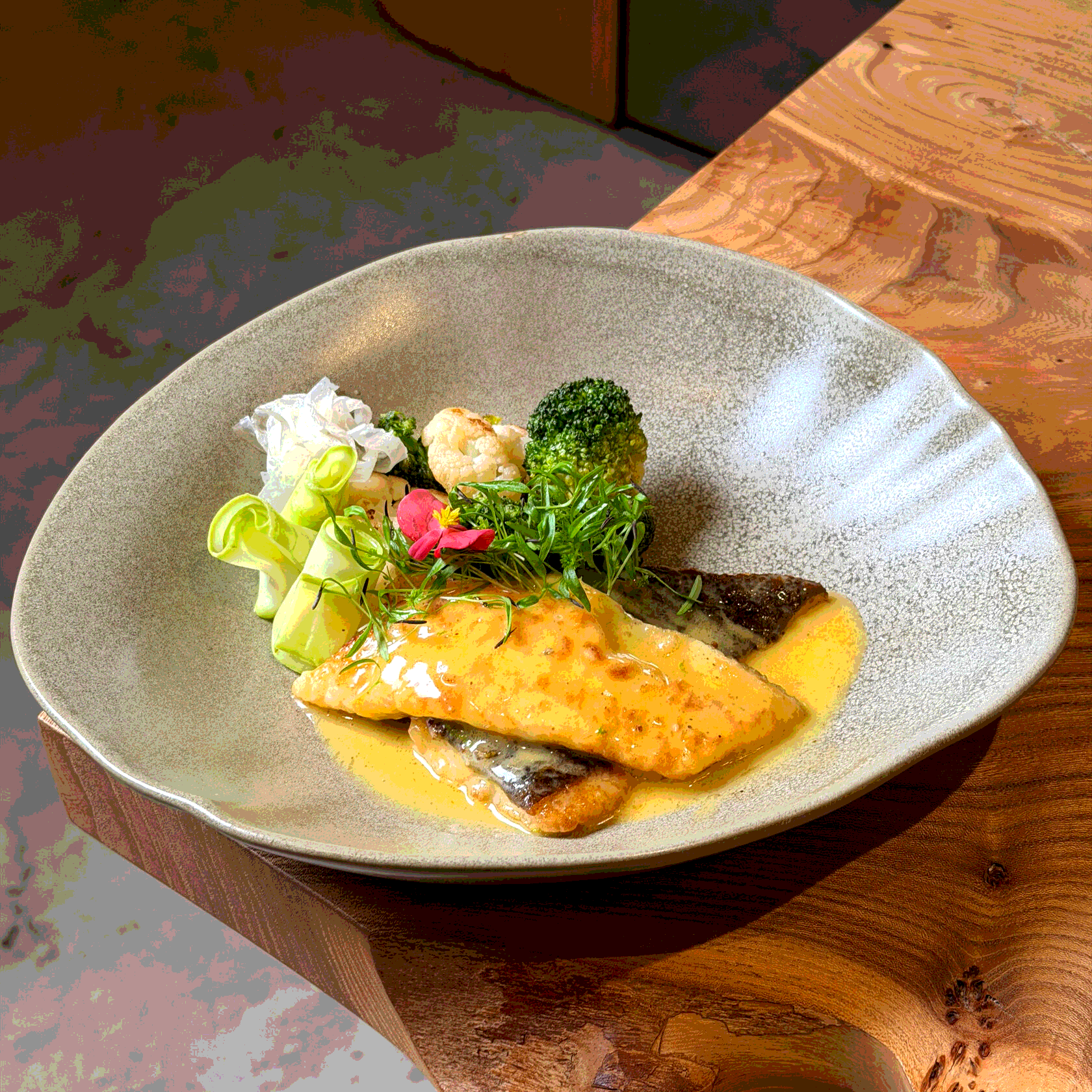 Камбала в соусе альборо с брокколи, цукини и фенхелем