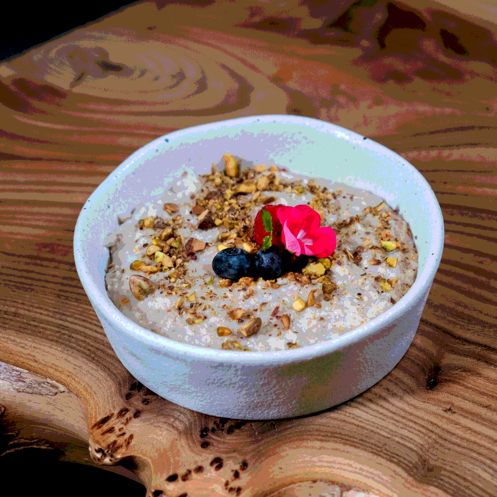 Овсяная каша с сезонными фруктами или ягодами