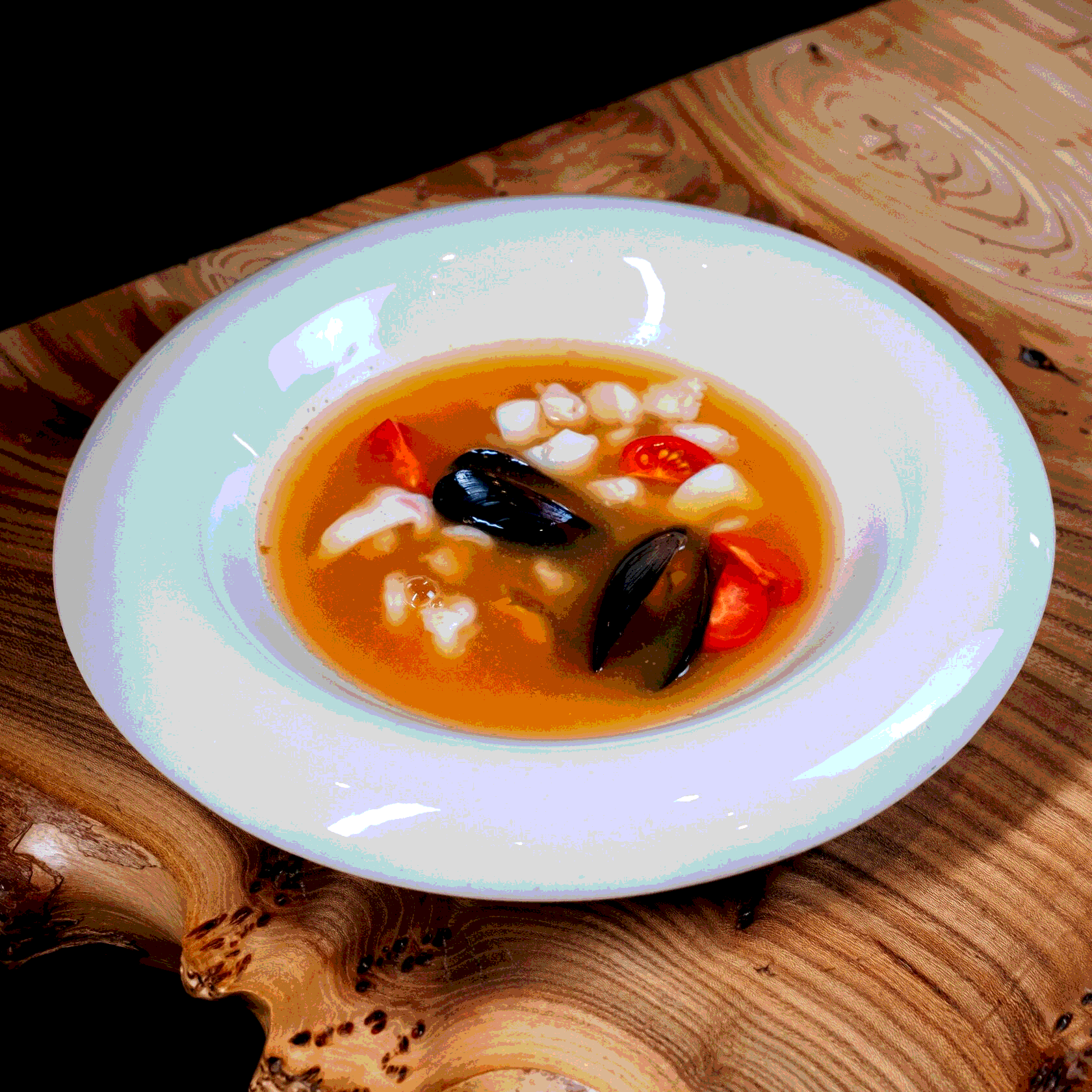 Буйабес с мидиями, креветками и кальмаром
