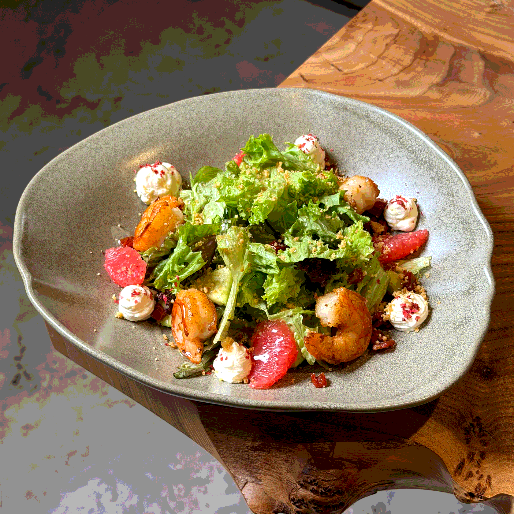 Салат с креветкой, авокадо, козьим сыром и грейпфрутом