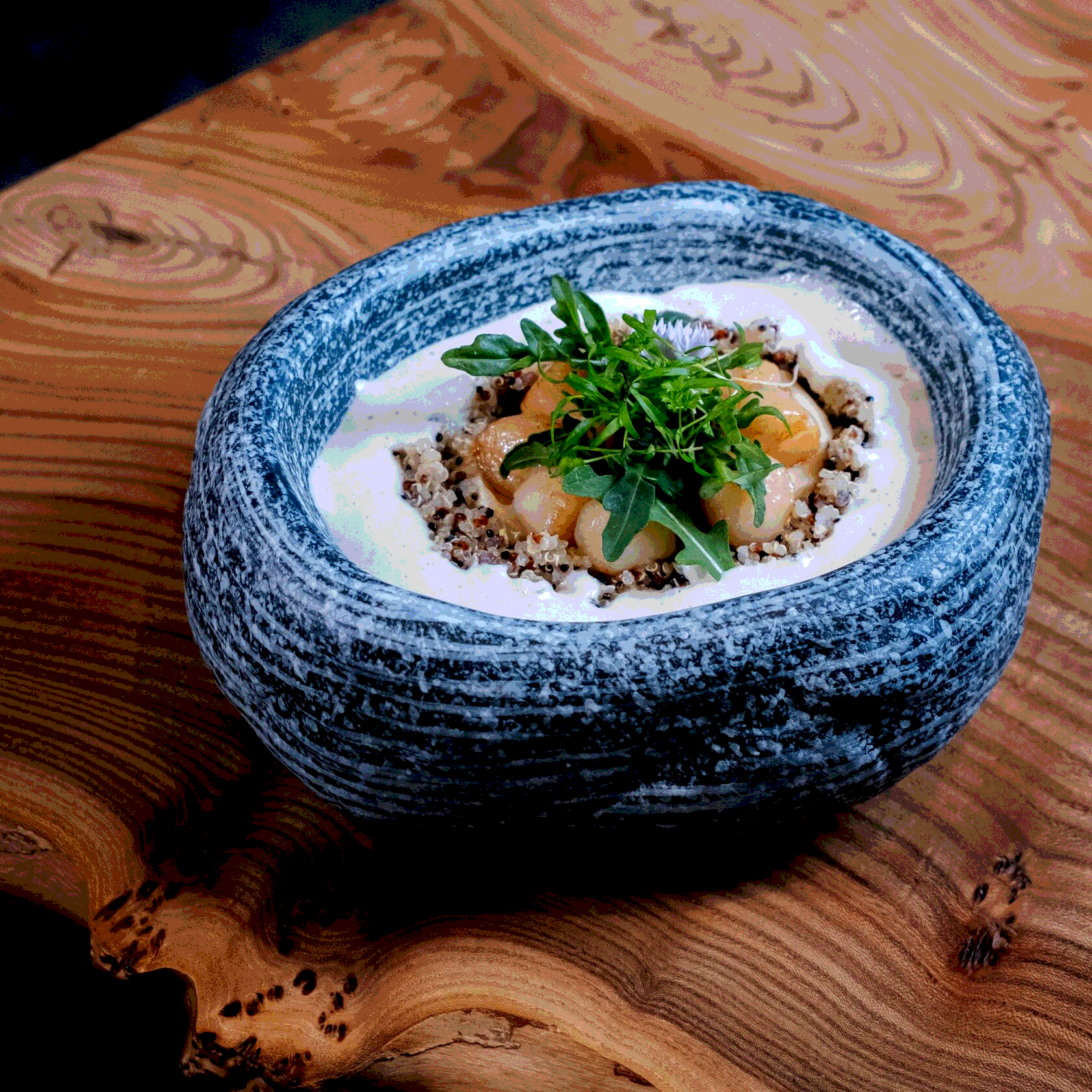 Гребешок с киноа и муссом из постернака